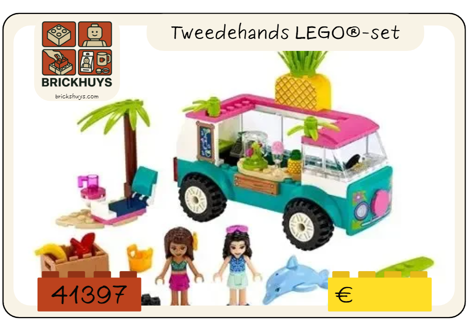 Laat kleine chefs genieten van deze eenvoudig te bouwen LEGO® Friends Sapwagen (41397). Deze set voor kinderen van 4+ biedt diverse spelstarters om kinderen urenlang bezig te houden: van het maken van smoothies tot chillen op het strand of spelen met de speelgoeddolfijnen. De kinderfoodtruck ziet er geweldig uit op een bureau of kan door de hele slaapkamer worden gereden naar de plek waar de volgende dosis fruitig plezier nodig is! Eerste stappen in het LEGO universum Deze LEGO® Friends 4+ set is een leuke manier om kleuters te leren bouwen. Het model bevat een speciale startsteenbouwplaat waarmee zelfs beginnende bouwers helemaal zelfstandig de trots van het bouwen van een speelgoedtruck kunnen ervaren. Een helpende hand Inclusief een eenvoudige bouw- en speelhandleiding die jonge kinderen helpt om de bouwstappen te begrijpen en hun verbeelding en zelfvertrouwen te versterken – een geweldige manier om kinderen te laten kennismaken met het bouwen met LEGO stenen. Download de LEGO Life app en laat kinderen deze LEGO Friends set in Instructions PLUS bekijken. Met de verschillende functies kunnen ze hun creatie echt tot leven zien komen!
